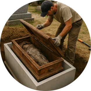 Dans le cadre d’une exhumation administrative, d’un transfert de sépulture ou d’une réduction de corps pour manque de place, nous assurons :
